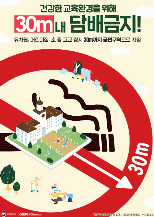 이번 방침은 ‘국민건강증진법’ 개정에 따라 기존 교육시설 경계선으로부터 10m 이내 구역을 30m 이내로 확대한 것으로, 금연 구역 내에서 흡연 행위가 적발되면 10만 원의 과태료가 부과된다.