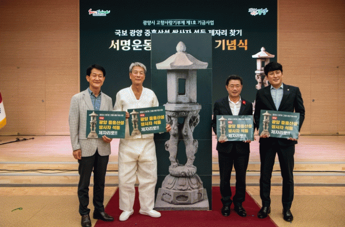 광양시는 지난 12일 시청 대회의실에서 열린 ‘국보 광양 중흥산성 쌍사자 석등 제자리 찾기 서명운동 5만 명 달성 기념식’을 성황리에 마쳤다고 밝혔다.