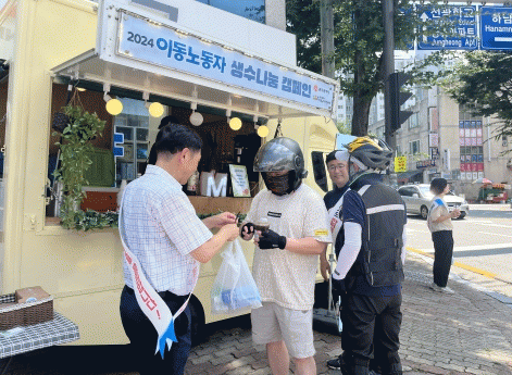 신창호 노동일자리정책관은 “지난 6월 택배노동자를 위한 생수나눔 안전 캠페인 이후 지속되는 폭염으로 이동노동자들의 건강과 휴식을 위한 행사를 진행했다”며 “이동노동자들이 건강하고 안전하게 일할 수 있는 환경을 조성해 나가겠다”고 말했다.