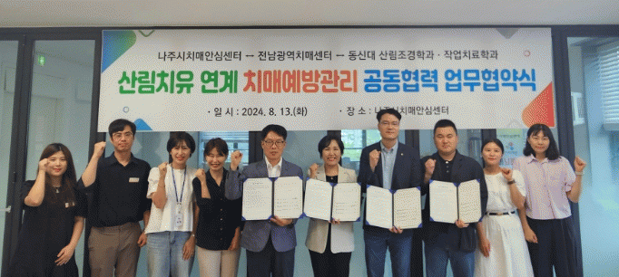 나주시보건소 치매안심센터(센터장 강동렬)는 최근 산림자원을 활용한 치매 예방 및 인지 기능 향상을 위해 다자간 업무협약을 체결했다고 14일 밝혔다.