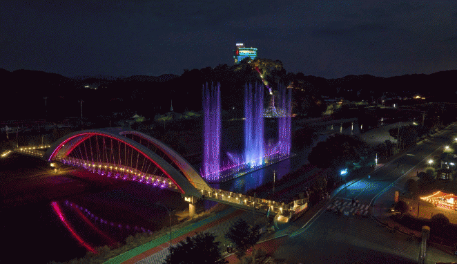 최근에는 앞에 들어선 개미산 전망대와 인공폭포, 화순천 음악 분수대가 조화를 이룬 야간경관이 각종 매체와 SNS를 통해 널리 알려지면서, 화순군의 새로운 랜드마크로 조명되고 있다.