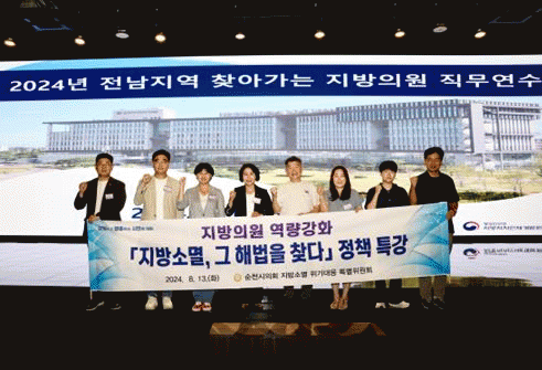 한편, '순천시의회 지방소멸 위기대응 특별위원회'는 이복남 위원장과 최미희 부위원장을 비롯해 나안수, 김영진, 우성원, 김태훈, 양동진, 이세은, 장경원 의원 등 9명으로 지난 7월 구성되어 본격적인 활동을 시작하고 있다.