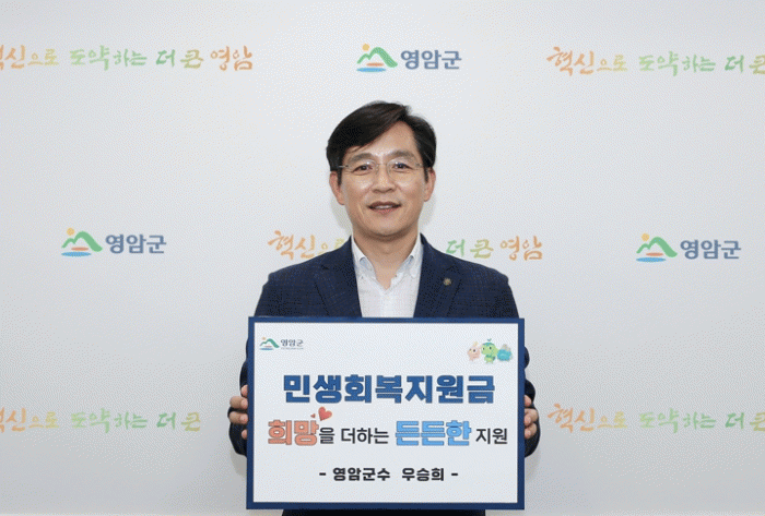‘민생회복지원금, 희망을 더하는 든든한 지원’ 문구가 적힌 피켓을 든 우승희 영암군수는, “민생회복지원금이 어려운 민생경제에 숨통을 틔울 물꼬 역할을 할 것으로 판단한다. 정부는 조속한 공포로 민생 안정에 기여해주길 바란다”고 강조했다.