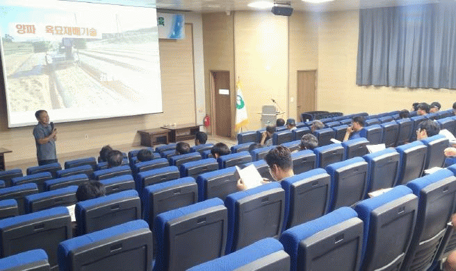 이날 교육에서 파종 후 발아율을 높이는 관수 방법, 기계 정식에 필요한 묘의 조건 확인, 그리고 기계 정식에 필요한 자재 소요량 파악 등 양파 기계 재배의 효율성을 높이기 위한 다양한 주제가 다루어졌다.