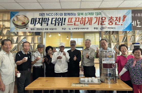행사에 참석한 여천NCC㈜ 김성태 대리는 “좋은 취지로 복지관 말복 행사에 함께할 수 있어 기쁘게 생각한다”며 “앞으로도 지역을 위한 후원과 봉사활동에 적극 앞장서겠다”고 말했다.