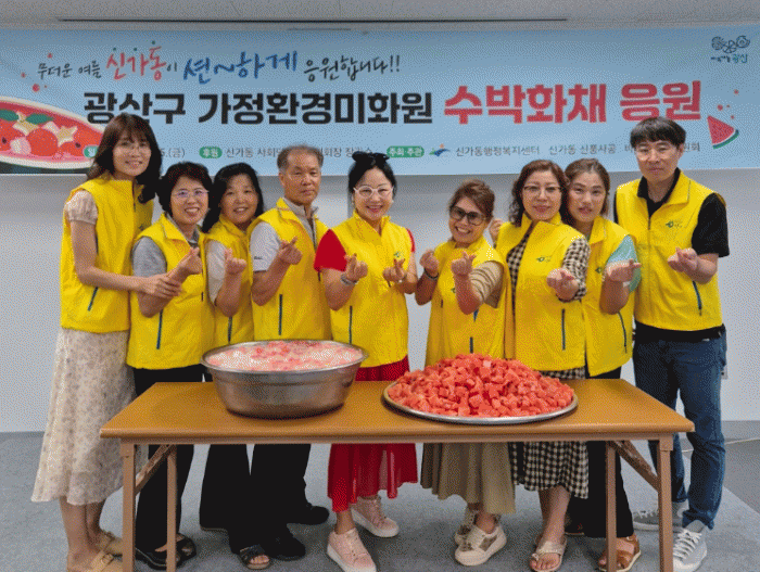 신가동 마을공동체인 ‘신풍사공’, 신가동 바르게살기위원회원 등 11명은 16일 광산구 생활환경종합센터(월전동)를 찾아 광산구 시설관리공단 소속 청소노동자 200명에게 수박화채를 전달했다.