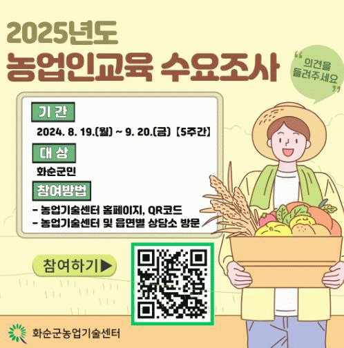 이번 수요조사는 온라인 및 방문을 통해 참여할 수 있으며, 온라인은 농업기술센터 누리집(농업기술센터)과 홍보 현수막에 표기된 QR코드를 통해 가능하고, 농업기술센터 및 읍·면 농업인상담소를 방문·참여할 수 있다.