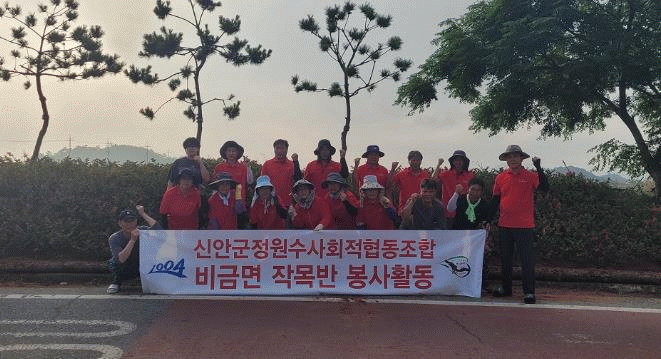 36명으로 구성된 비금면 작목반은 올해 생산했던 붉은 배롱나무가 식재된 공원 주변의 제초작업과 복토 작업을 통해 지역사회 발전에 보탬이 되기로 뜻을 모은 것이다.