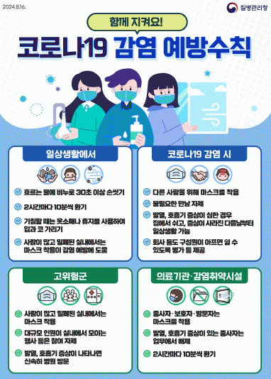 코로나19 감염 예방을 위해서는 ▲기침 예절 실천 ▲올바른 손 씻기의 생활화 ▲씻지 않은 손으로 눈, 코, 입 만지지 않기 ▲실내에서는 자주 환기하기 ▲발열 및 호흡기 증상 시 의료기관 방문 진료 등의 수칙을 준수하는 것이 중요하다.