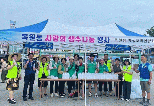 목원동 자생조직연합은 지난 16일 목포역에서 관광객들에게 얼음 생수를 전달했는데, 이는 지난 7일 박주영 바르게살기운동 전라남도협의회장이 기탁한 생수 2,000병을 뜻깊게 사용하기 위한 일환으로 진행됐다.