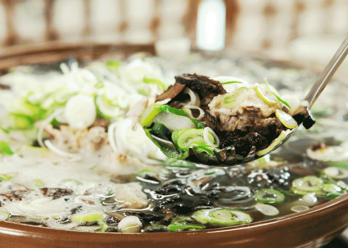 능이닭곰탕(곡성3味)은 생닭을 초벌로 끓인 뒤 국물을 비우고 다시 육수를 우려, 닭 고유의 비린내를 잡았다. 능이버섯 특유의 향과 맛이 어우러진 국물이 담백하면서도 시원하다.