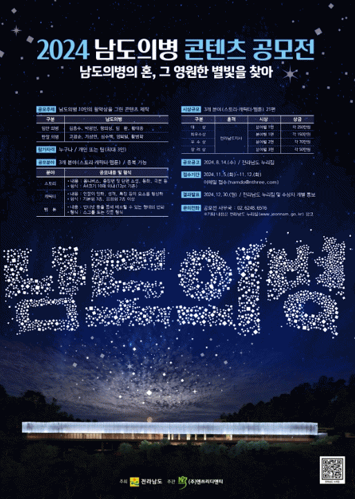 남도의병의 활약상을 그린 스토리, 캐릭터, 웹툰, 3개 분야 작품을 모집한다.