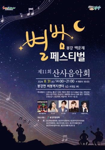 이미영 봉강면장은 “8월의 마지막 밤에 열리는 '봉강 백운제 별밤 페스티벌'은 지역 주민들이 함께 어우러져 폭염으로 지친 몸과 마음을 치유하고 낭만을 만끽할 수 있는 시간이 될 것이다”라며 시민의 많은 관심과 참여를 당부했다.