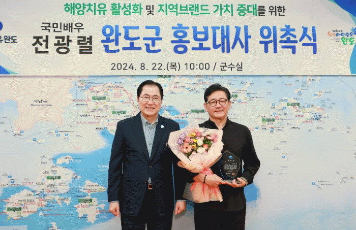 전광렬 배우는 ”완도의 청정한 바다와 자연환경을 활용한 해양치유가 국민 건강에 도움이 될 것으로 기대된다“면서 “해양치유의 장점과 가치를 많은 이들에게 전달하는 데 최선을 다하겠다“라고 밝혔다.