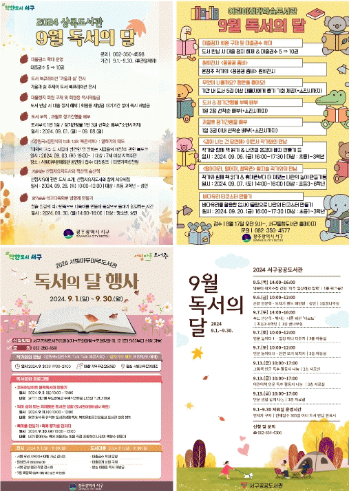 한미 도서관과장은 “가을의 시작 9월에 도서관에서 풍성한 독서문화프로그램을 누리며 주민들이 도서관과 더 친해지는 계기가 되길 바란다”고 말했다.