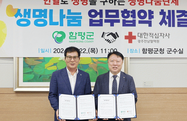 함평군청 군수실에서 진행된 이날 협약식에는 이상익 함평군수와 김동수 대한적십자사 광주전남혈액원장, 심화섭 보건소장 등 관계자 10여 명이 참석했다.
