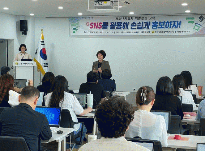 교육에서는 페이스북, 인스타그램, 유튜브. 틱톡 등 다양한 SNS 플랫폼을 활용한 실전 홍보 전략과 함께 트렌디한 콘텐츠 기획법, 청소년 맞춤형 콘텐츠 제작, 이미지와 영상을 활용을 통한 효과적인 메시지 전달 기법 등이 다루어졌으며, 참가자들은 실질적이고 유용한 정보에 큰 관심을 보였다.