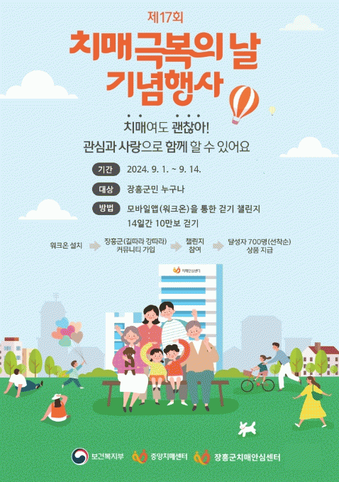 장흥군 관계자는 “치매에 대한 부정적 인식을 개선하고 걷기 생활화로 치매를 예방하는 습관을 형성하길 바란다”며 “치매와 더불어 사는 사회를 조성하기 위해 노력하겠다”고 밝혔다.