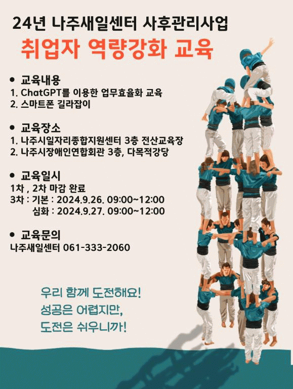 교육에 대한 자세한 정보는 나주새일센터로 문의하거나 나주새일센터 홈페이지에서 확인할 수 있다.