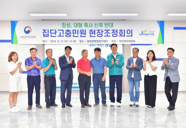 군은 21일 동화면 행정복지센터에서 김한종 장성군수, 민원인 대표 및 마을 주민, 해광축산 대표가 참석한 가운데 국민권익위원회 주관 현장조정회의를 열고 해당 축사를 정부 양곡저장창고로 용도 변경하는 데 합의했다.
