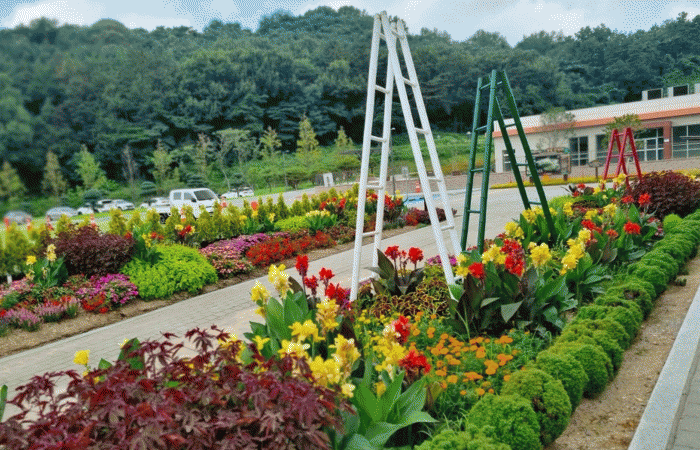 이 화단은 색채가 화려하고 형태가 다양한 칸나·콜레우스 등 열대성 화훼식물을 ‘중심꽃-모양꽃-무늬잎꽃-덩굴꽃’의 디자인적 요소를 고려해 입체적으로 혼합식재 했다.