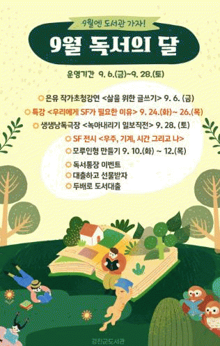 독서의 달은 국민의 독서 의욕을 고취하고 독서의 생활화를 유도해 건전한 독서문화를 정착시키기 위해 지정된 달로, 독서문화진흥법에서 매년 9월로 규정하고 있다.
