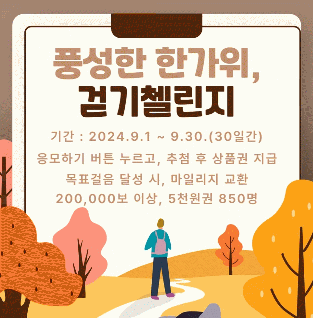 9월 걷기 챌린지는 오는 9월 1일부터 9월 30일까지 한 달 동안 진행한다.