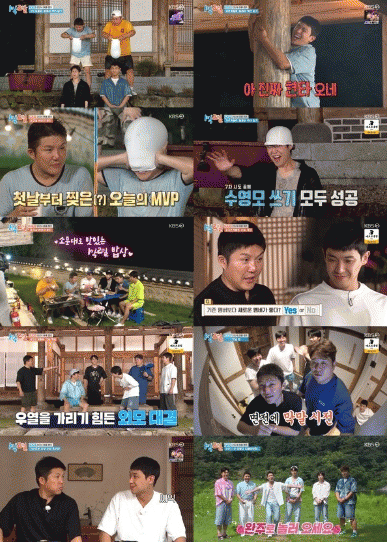 특히 물 담은 수영모를 씌워야 하는 3단계 미션을 좀처럼 넘어서지 못하자 제작진은 직접 시범을 보이며 꿀팁까지 전수했을 정도. 1시간이 넘는 도전 끝에 겨우 모든 미션을 성공한 멤버들은 화기애애하게 이야기꽃을 피우며 바비큐 저녁식사를 즐겼다.