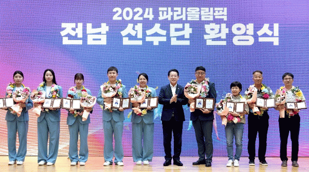 공식 행사에 앞서 도청 윤선도홀에서 명창환 전남도 행정부지사를 비롯한 도청 직원들은 프랑스 파리에서 대한민국의 자존심을 드높인 전남 선수단을 환호하며 꽃목걸이를 전달했다.