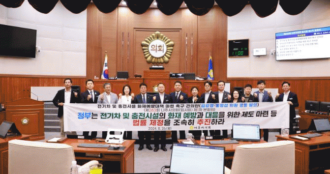 특히 전기차 충전시설 설치 장소나 화재방지 및 확산 시설 구비가 지자체별로 각각 다르게 규정하고 있는 것은 관련법이 없기 때문이라며, 정부가 선제적으로 화재예방대책 등 관련 제도를 정비하고, 화재 진압에 필요한 예산을 높여 지자체에 지원해 줄 것을 당부했다.