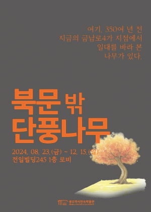 이번 전시는 17세기 초 지금의 금남로4가 일대에 뿌리내렸다가 1960년대 후반 금남로 확장공사로 베어진 단풍나무가 주인공이다. 단풍나무 뿌리목은 현재 광주역사민속박물관 근대역사실에 전시 중인 유물로, 실제 금남로4가에서 350년을 살았다.