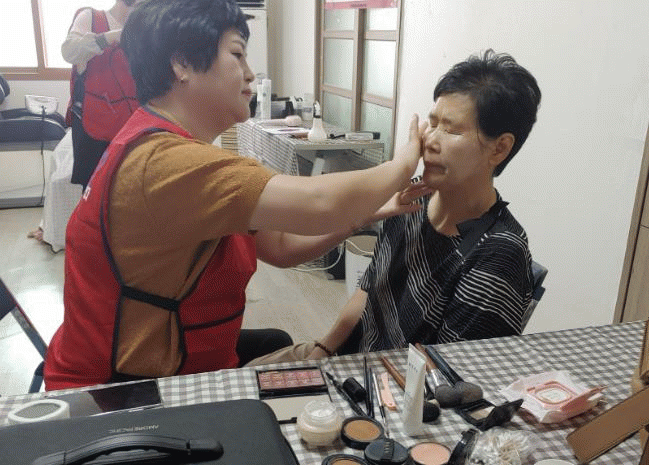영암읍에 사는 해승님 봉사단원은, 10여 년 전 영암봉사단의 시작부터 함께해 영암군 120개 넘는 마을의 어르신들에게 메이크업을 해줬다. 한 화장품 회사의 카운슬러로 재능기부를 이어오고 있는 그는 “결혼 이후로 처음, 심지어 태어나서 처음으로 메이크업을 한다는 어르신도 있다. 그 어르신이 예뻐지는 모습을 옆에서 보고, 다른 어르신들이 ‘나도 해달라’고 말할 때 보람이 크다”고 전했다.