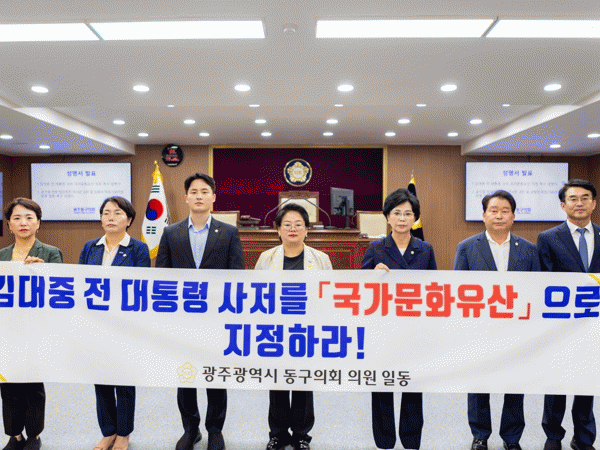 이에 동구의회는 김대중 전 대통령의 사저를 정부가 매입해 이희호 여사의 유지에 따라 ‘김대중·이희호 기념관’으로 조성하고 국가문화유산으로 지정하여 문화재로서 관리해 줄 것을 촉구했다.
