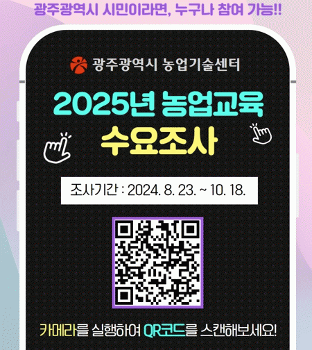 온라인 조사는 광주농업기술센터 인스타그램, 블로그 등 사회관계망서비스(SNS)와 광주농업기술센터 누리집 팝업창 정보무늬(QR코드)를 통해 의견을 제시하면 된다.