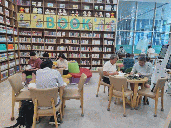 아이를 동반한 가족 단위 방문객을 위해 아동 소파와 아동도서, 웹툰까지 갖춘 키즈존을 조성해 운영 중이고, 시력이 좋지 않은 어르신을 위한 돋보기와 글자 크기를 키운 대활자본 도서까지 비치해 놓은 상태다.