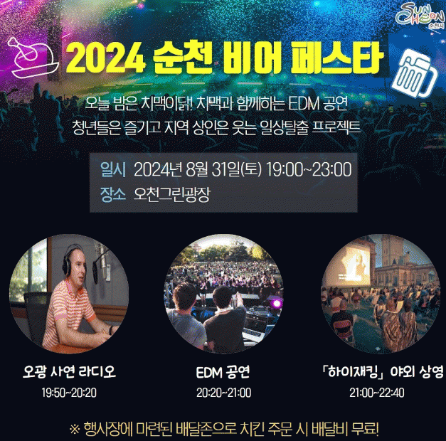 오천그린광장에서 열리는 '2024 순천 비어페스타'는 맥주와 함께 즐길 수 있는 공연과 다양한 프로그램이 마련된다.