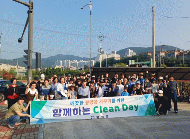 광양읍은 ‘우리 동네 쓰레기는 내 손으로 내가 줍는다’라는 취지에서 ‘클린데이’ 행사를 개최하고 있으며 지역 청결 활동, 안전 위험요인 발견 및 신고 활동을 통해 공동체의 행복을 함께 가꿔나가고 있다.