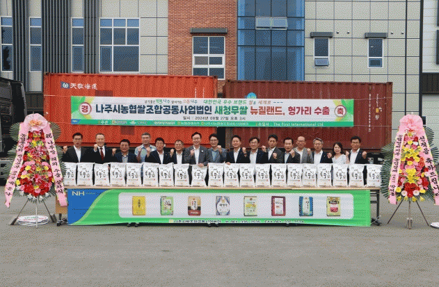 전라남도 나주시는 27일 나주시농협쌀조합공동사업법인에서 나주쌀 ‘새청무’ 헝가리 첫 수출을 기념하는 상차식을 가졌다고 밝혔다.