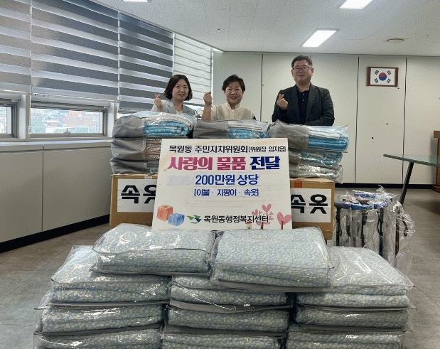 박현주 목원동장은 ”이번 생활용품 후원으로 뜻을 모아주신 목원동 주민자치위원회 위원들께 감사드린다“고 전하며 ”주민자치위원회와 꾸준히 협력해 정이 넘치는 지역사회를 만들 수 있도록 노력하겠다“고 전했다.