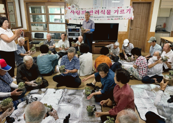 어르신들에게 반려식물을 선물하고, 식물을 키우는 방법과 관리 요령을 설명했다.