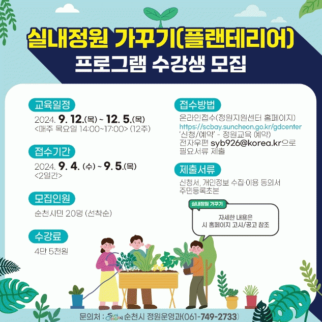 기타 교육에 관한 자세한 사항은 순천시청 누리집 공고문이나 순천시 정원운영과로 문의하면 된다.