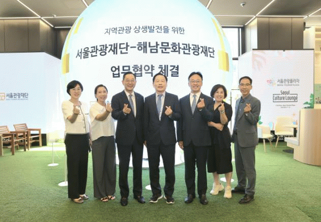지난 28일 서울관광재단 회의실에서 열린 협약식에는 해남문화관광재단 이사장인 명현관 해남군수를 비롯해 서울관광재단 길기연 대표이사, 해남문화관광재단 구자형 대표이사와 양측 재단 관계자들이 참석했다.