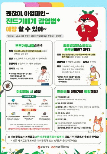 중증열성혈소판감소증후군(SFTS)은 주로 바이러스에 감염된 작은소피참진드기에 물린 후 5~14일 이내 고열, 구토, 식욕부진 등의 증상을 나타내는 감염병으로 백신과 치료제가 없고 누적 치명률이 18.7% 전후로 높아 사전 예방과 빠른 발견, 적기 치료가 무엇보다 중요하다.