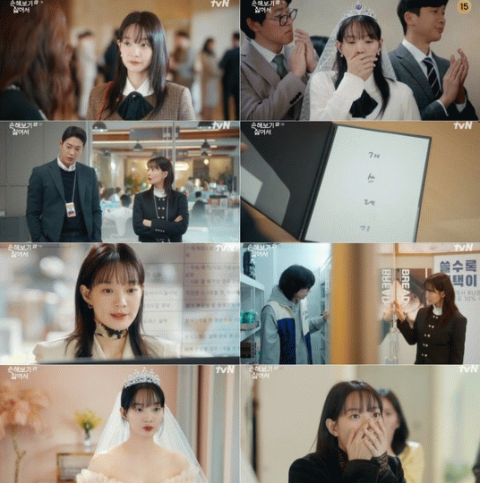 2회에서 해영은 전 남자친구를 향한 복수심과 사내 공모에서 1등을 하기 위해 가짜 결혼‘식’만 올리기로 결심, 자신에게 유독 으르렁대는 편의점 지X견 알바생 김지욱(김영대 분)에게 돌직구 청혼을 건넸다.