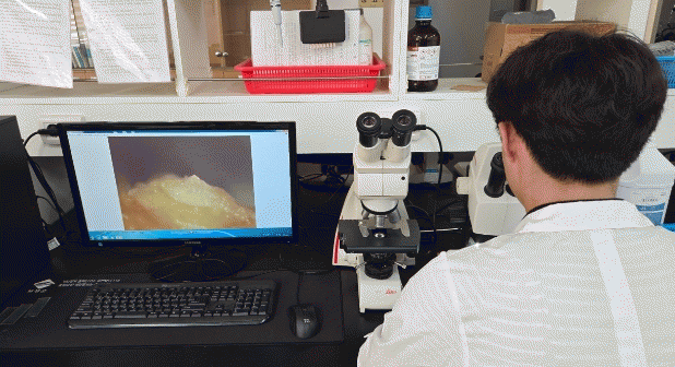 ‘딸기 화아분화 검경’은 딸기 묘의 생장점을 현미경으로 관찰해 딸기의 꽃눈분화 정도를 확인하는 것이다.
