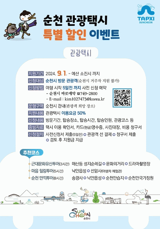 자세한 사항은 순천시 누리집이나 관광과로 문의하면 된다.