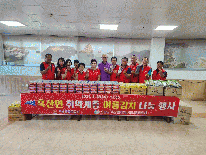 이번 여름 김치 나눔을 통해 흑산면 지역사회보장협의체는 취약계층의 건강과 복지를 증진하고, 이웃 간의 따뜻한 정을 나누는 계기를 마련했다.