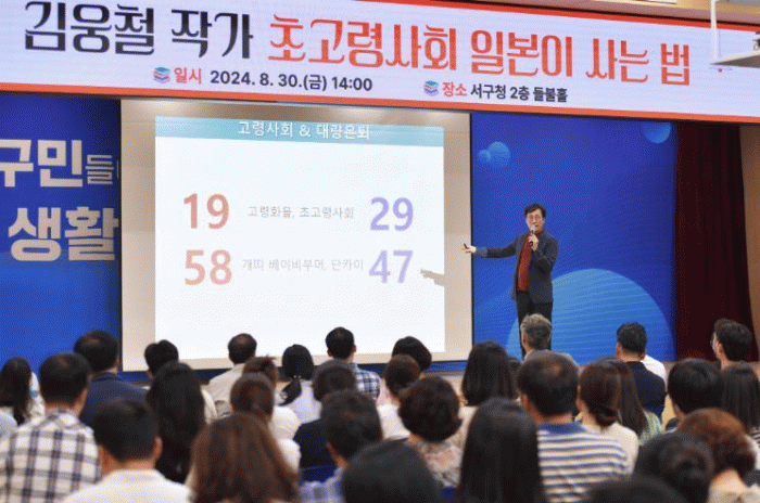 김웅철 대표는 '초고령사회 일본이 사는 법' 저서를 바탕으로 일본의 다양한 사례를 통해 초고령사회에 대비한 전략을 제시했다.