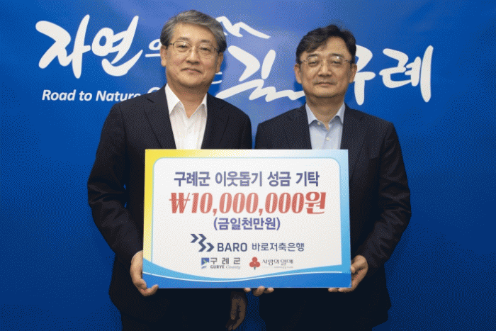 한편, 이번 기탁식은 지난 2022년 구례군과 바로저축은행의 1사1촌 상생 협약에 따른 것이다.