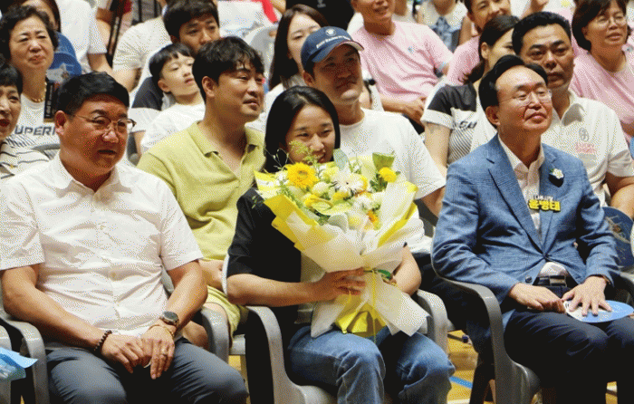 환영식엔 윤병태 나주시장과 신정훈 국회의원, 이재남 시의회의장, 김재억 체육회장을 비롯해 나주지역 배드민턴 동호인, 시민 등 400여명의 대규모 인파가 객석을 가득 메웠다.